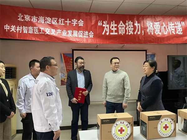 1月11日,捐赠仪式在海淀区医学救援中心举行,海淀区红十字会常务副会长张宇光,中关村智康医工交叉产业发展促进会秘书长张世亮,青岛光电拿伦医疗设备有限公司董事长张涛,海淀区医学救援中心书记兼主任程洪丹等领导参加活动。