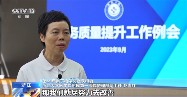 第49届南丁格尔奖章获得者 浙江大学医学院附属第一医院护理部副主任 赵雪红:临床是第一线,我自己能掌握第一手资料的话,就知己知彼百战不殆。南丁格尔精神也是要专业精湛,无私奉献。其实我们护理这个工作本身就是很平凡的,但是平凡的事情要把每一件都做好,而且我要求我自己每件事情要做到极致。提升护理质量,提升服务效能,把病人可以护理得更好。
