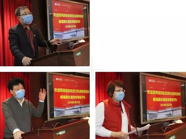 出发前,医院召开启程会。党委书记张允岭指出此次医疗队是在国家中医药管理局、中国中医科学院统一部署下成立的,是“国家中医医疗队”,国家中医药管理局闫树江副局长及中国中医科学院院长黄璐琦院士将和大家一起远赴武汉。张允岭要求各位队员一定要牢记使命,发扬救死扶伤精神,全力做好新型冠状病毒感染的肺炎患者救治工作。医疗队中的党员干部要发挥好模范带头作用,成立西苑医院抗击新型冠状病毒感染的肺炎医疗队临时党支部,一名党员就是一面旗帜。医院也将全力以赴支持各位队员,做好疫情防控的坚实后盾。李浩副院长代表医疗队表态,一定不辱使命,保证完成任务,让中医药在疫情防控中起到重要作用。