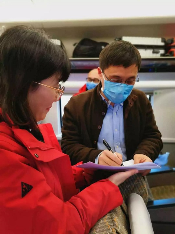 今天恰逢队员陈盈盈29岁生日,列车上中国中医科学院院长黄璐琦院士在口罩上写下生日祝福语!