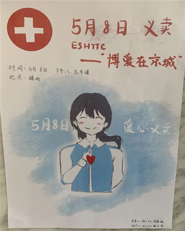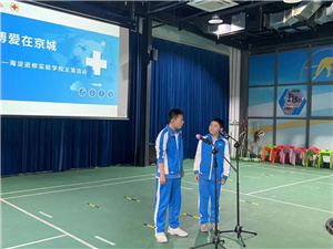2021年5月8日,在第74个红十字日来临之际,进修实验南校区初一、初二年级积极响应海淀区红十字会号召,举办了以“博爱在京城”为主题的义卖和义演活动,意在让当代中学生更多地关注社会,担当起社会的责任,也为了帮助更多需要帮助的人,更为了创建和谐社会,让更多的人加入到爱心举动行列中来。老师和同学们都以激情饱满的状态迎接这一天的到来。